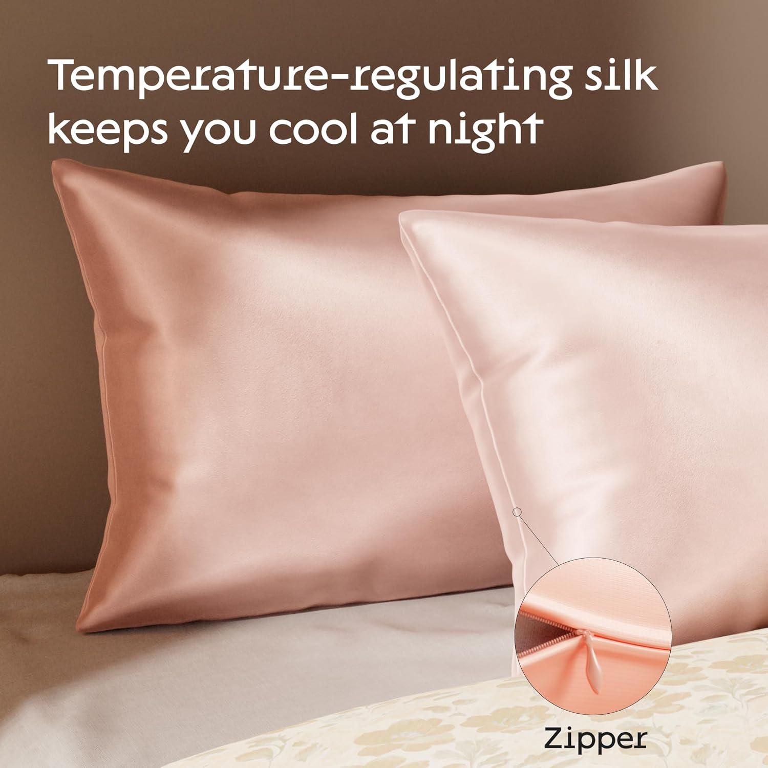 DURABLE & EASY TO CARE: The dense weave of each mulberry silk pillowcase guarantees durability. Plus, the expert stitching and reliable zipper ensures a snug fit, even after countless washes in the washing machine.