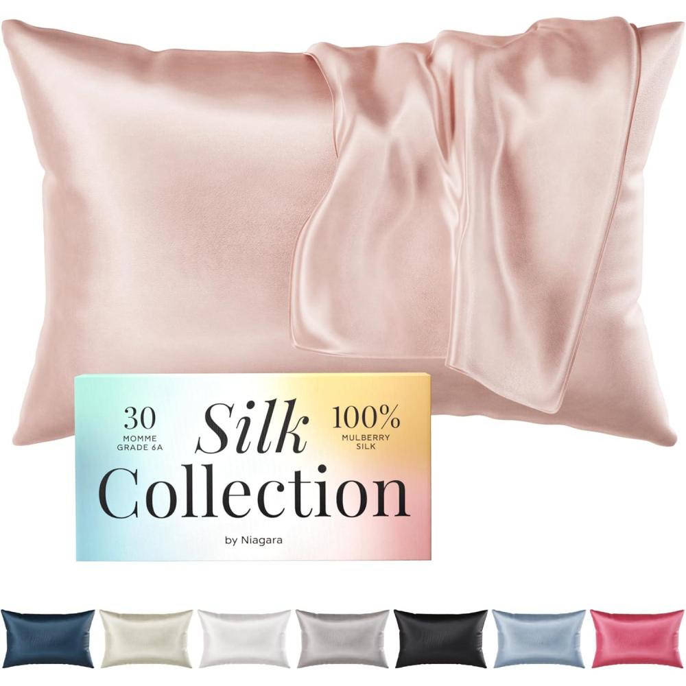 Niagara 100% Mulberry Silk Pillowcase – 30 Momme Silk Pillow case for Hair and Skin – Grade 6A Silk Pillow Cases with Zipper – Soft & Cooling Beige Silk Pillowcase Queen Size (20″x30″)(Pink)